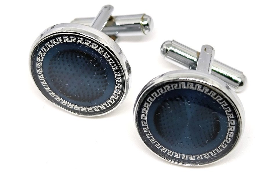 Mörkblå silverfärgade manschettknappar