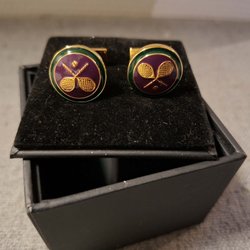 manschettknappar med motivet Tre kronor på blå emaljbakgrund.