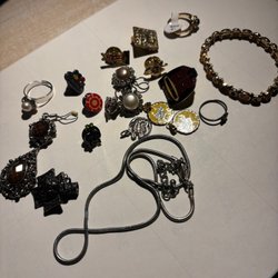 Ett par manschettknappar med spader symbol.