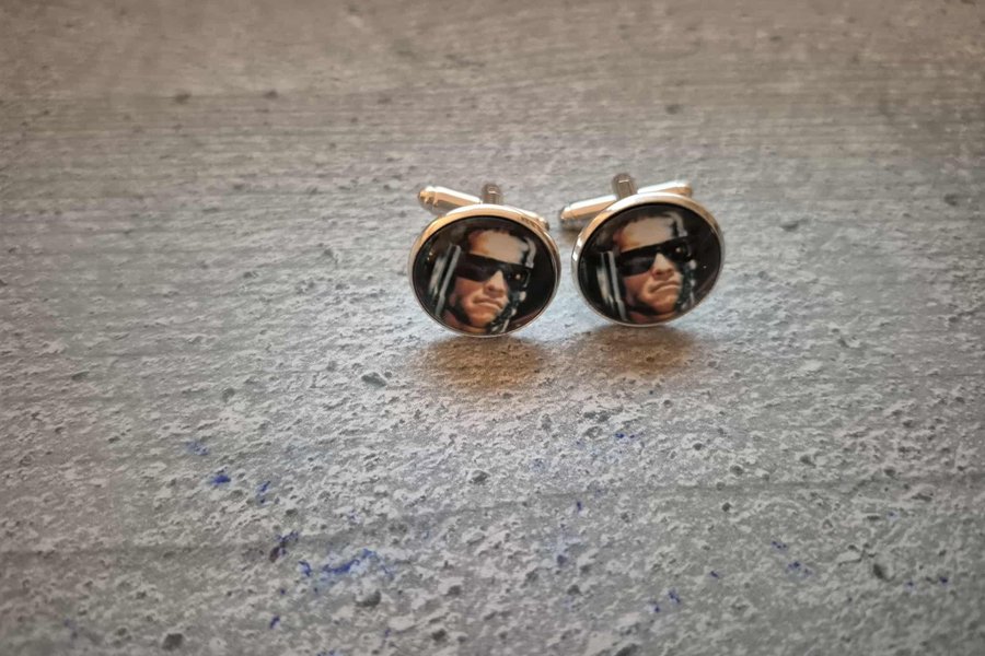Ett par manschettknappar med motiv av Terminator