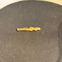 Ett elegant slipsnål i en guldfärgad ton. Den har en klassisk design som passar perfekt för att hålla slipsen på plats och ge en sofistikerad touch till din outfit.