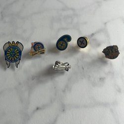 Tre slipsnålar i guldfärgad metall. En med en symbol, en enkel och en med texten ”The Hole in One Club” och en golfklubba.