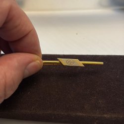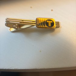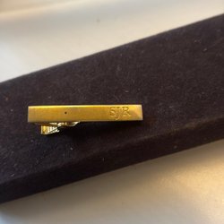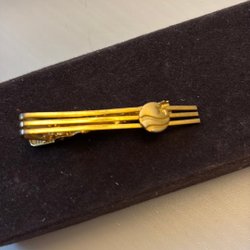 guldfärgad slipsnål som fyller både en dekorativ och praktisk funktion genom att hålla slipsen snyggt på plats.