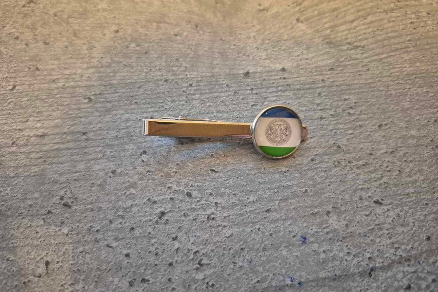 Slipsnålen har en klassisk klämma som håller slipsen på plats.