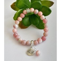 Bokmärket har ett hänge med rosa JADE naturpärlor 8 mm,