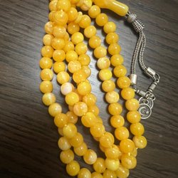 Väldigt fin gammal bakelit radband som är tagit i slutet av grund delen se bilden med ena kulan halv gul.