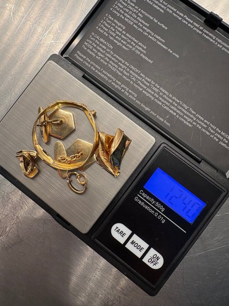 Inkluderar manschettknappar och annat skrotguld