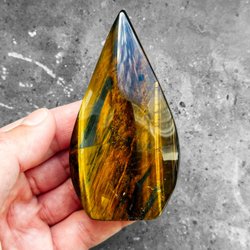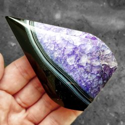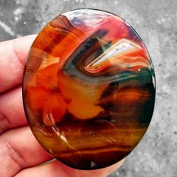 Med en hårdhet på ca 6,5-7 på Mohs skala är detta en hållbar sten som är väl lämpad för hantering och uppvisning. Den högpolerade ytan förstärker stenenas inslag av färg och ger den ett vackert skimmer. Denna unika kombination av naturligt konstverk och skulpterad form gör den till en mycket dekorativ pryl, ett eftertraktat samlarobjekt för mineralintresserade eller en mycket speciell presentidé.
