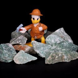 Här kan du skaffa dig en fin Solsten från Indien till din stensamling. Den är också väldigt bra som slipmaterial för att göra smycken. Solsten från Tanzania ger oftast ett större reflekterande sken, medan denna från Indien saknar detta. Denna har däremot mindre reflektioner i lite guldskimmer och lite grönt i sig. Man brukar nämna de orangea fläckarna som nästan lyser som små kristaller i solskenet. När man lyser med UV-ljus på denna så riktigt gnistrar det om stenen i blåaktigt skimmer.