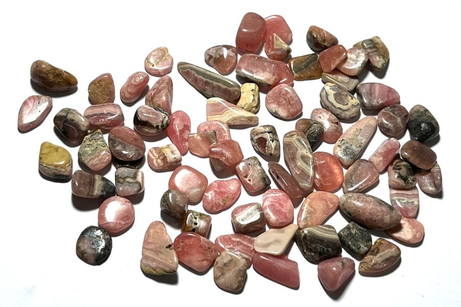 Små fina "chips" stenar av Rhodokrosit, Du vinner en likadan omgång med stenar som på bilden som är snarlika.