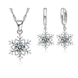 Silver Smyckesset till Jul - Halsband & Örhängen -Snöflinga & CZ -Silverpläterat