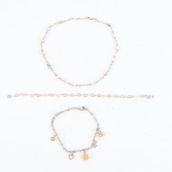 3st halsband 1-agathalsband, 49 cm långa 2- Halsbandet är tillverkat av porslin lång 42cm.3- halsband vet inte vilken material lång 58cm