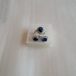 Örhängen längd 5,5sm., diameter 45mm., ring med grå kristall st. 17