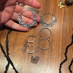 Parti med blandade bijouterier. Ringar (liten storlek), manschettknappar, en mängd örhängen, hängen