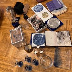 Låda med smycken. Lite allt möjligt. Örhängen, Ringar osv. Kan finns defekter. Trodde att jag köpt guld, men så var det inte, bara guldfärgad metall. Säljer nu allt med förlust.