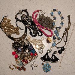 Diverse smycken , inget äkta . Olika material . Halsband , armband ,ringar samt örhängen .