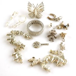 Säljes som silver med okänt silvervärde. Myntet är nog runt 30%, en hel del är 830 skulle jag gissa men silvret från juveleraren (det med silvertrådar) undrar jag om det inte är "fine silver" då det är väldigt mjukt.