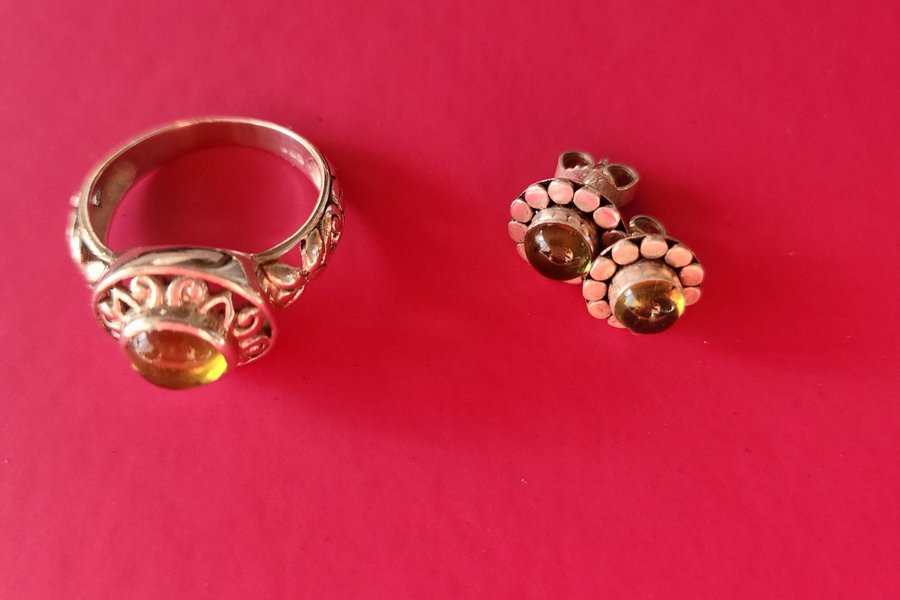 Ring och stiftörhängen.