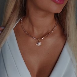 Ett handgjort smyckeset bestående av en svart kristallchoker och en hjärtformad kedja. Den svarta hjärtformade chokern är 38 cm lång, plus en 5 cm förlängningskedja med spänne baktill. Den hjärtformade kedjan med mikrozirkoner är 52 cm lång. Hårdvaran är i förgylld mässing, missfärgningsfri och allergivänlig. Priset är för 2 stycken. Kan säljas separat.