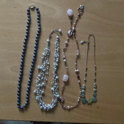 Halsband i lite bruna och lila toner.