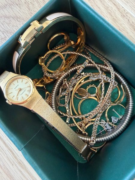Upphittad smyckesamling samt klocka ifrån ett dödsbo. Har inte gått igenom något så kan inte garantera material eller kvalité.