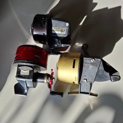 Tre stycken Record rullar, modeller No 1500x2 och No 1550. Rullarna är tillverkade av AB Urfabriken i Sverige. Passar för fiske eller som reservdelar.