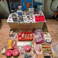 Samling av diverse fisketidningar och kataloger. Inkluderar titlar som "På fiske med Ron Thompson" och kataloger från Sölvkroken. Perfekt för fiskeentusiasten. Nyskick!