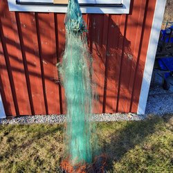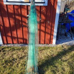 Fiskenät Piggvar knutavstånd 110 mm, längd 55 m, djup 4 fot (120) handsytt, starkt nät monotwist. Jag samfraktar