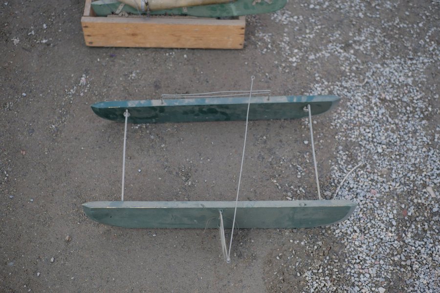 En skridsko avsedd för isfiske. Utrustad med fästen för enkel hantering. Passar för användning på frusna sjöar.
