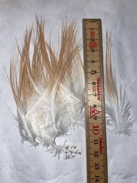Naturlig ljusbrun och vit 20 st strållängd ca. 40-50mm, stålarna något klenare och glesare än på gråhäger.