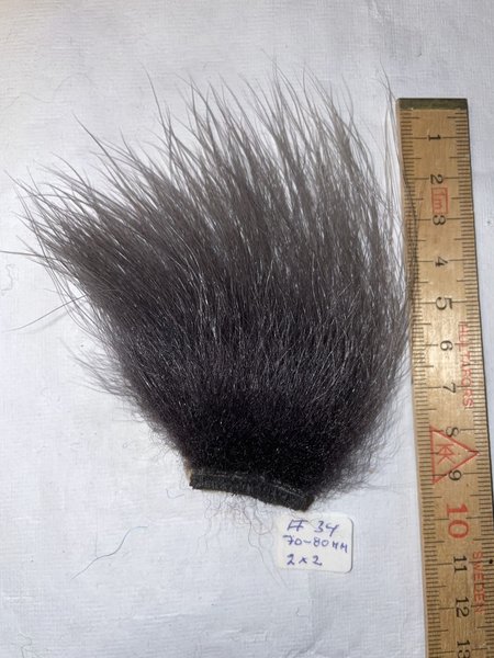 färgad grått, hårlängd ca.70-80 mm , skinnbiten ca. 20x20 mm, Mycket fin kvalitet enlig min uppfattning. Svårt att få tag på.