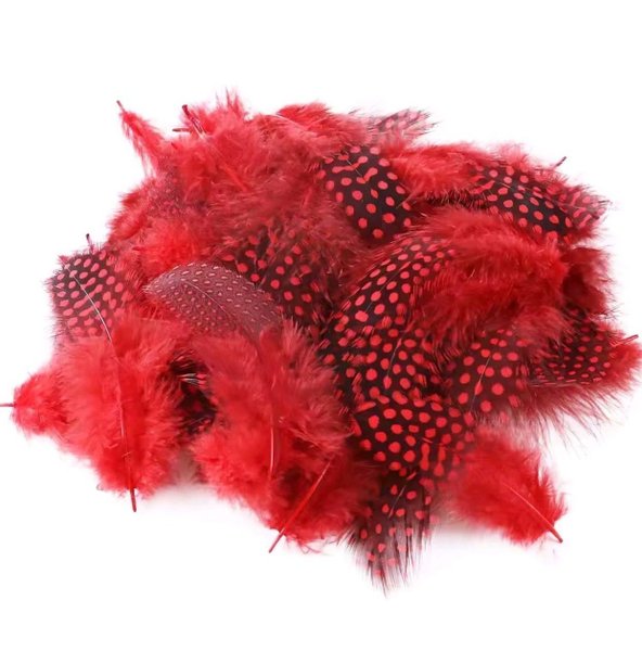 Ny och obrukad förpackning. Pärlhöna i färgen red. Noggrant utvalda handplockade fjädrar av högsta kvalitet, avsedda för flugbindning. Storlek på fjädrarna 7-13cm. Ca 25st fjädrar i påsen. Lycka till med dina bud. Samfraktar vid flera vunna auktioner.