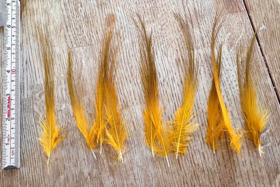Hägerfjädrar för flugbindning. 10st i bananfärg för lax och havsöringsflugor.