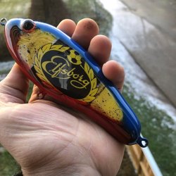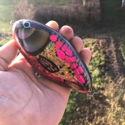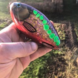 Den är gjord av EK-trä, väger ca 120 gram och är 15 cm lång. Den är bra för gäddfiske och sjunker långsamt. Säljes precis som på bilden