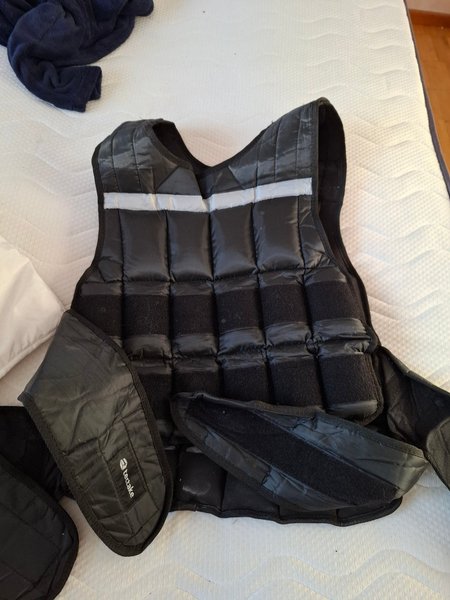 Viktväst från Tectake. Västen är svart med reflekterande detaljer och har justerbara remmar med kardborreband. Även justerbara vikter .