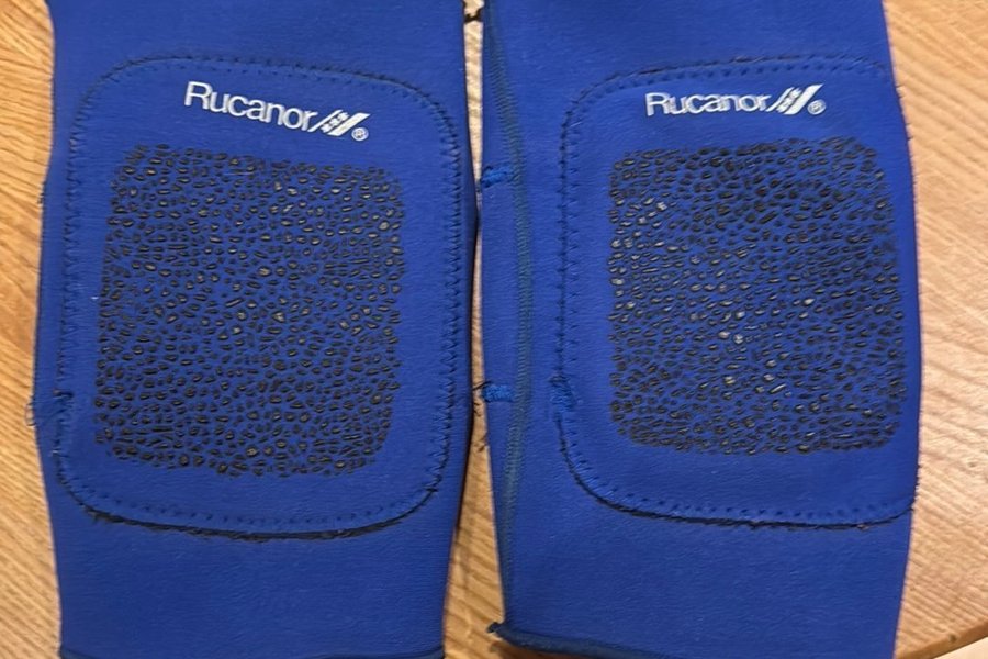 Ett par blå knäskydd från Rucanor. Perfekt för sport och andra aktiviteter. Storlek medium.