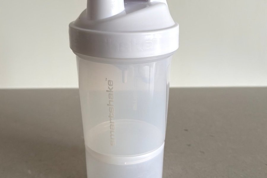 Smartshake shakerflaska i vitt. Perfekt för proteinshakes eller andra drycker.