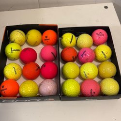 Ett parti med golfbollar från olika märken som Titleist 28 st tour soft 2 st velocity märken som logga kan förekomma typ b klass