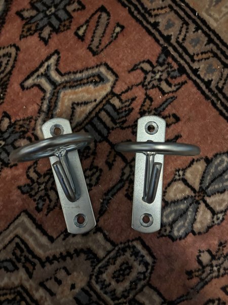 Dessa väggfästen i metall är designade för att monteras på en vägg. De har en robust konstruktion och är lämpliga för olika upphängningsbehov tex vattenhink