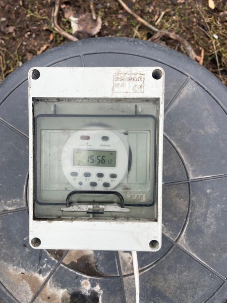 Timer för fodergrind. Fungerar felfritt. Går att ställa in ett 20-tal tider på den. Kompatibel med flexigrind och liknande. Kopplas till batteri eller aggregat. Kan skicka med en flexigrind (som inte helt rullar in) om så önskas.