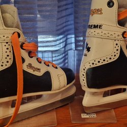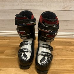 Säljer ett par Scarpa skidpjäxor. Storleken är 7 1/2 och de är tillverkade i Italien. Perfekt för den som behöver ett par pålitliga pjäxor.(troligen telemark pexa)