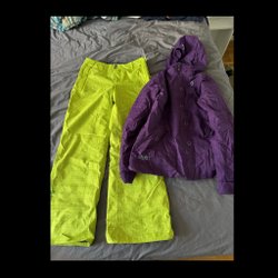 Ett par blåa /jeans Burton skidbyxor/snowboardbyxor med gula sömmar. Byxorna har flera fickor, inklusive två framfickor, två bakfickor och en benficka med Burton-logga. Byxorna har även justerbar midja och förstärkta knän. I mycket bra skick.