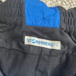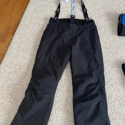 Ett par svarta skidbyxor med justerbar midja och McKinley logotyp på benet.