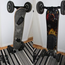 Brädan är rejält påkostad med forged independent truckar (ska klara upp till 150 kg). Powelldäck och ngt coolt kullager (minns ej vilket).