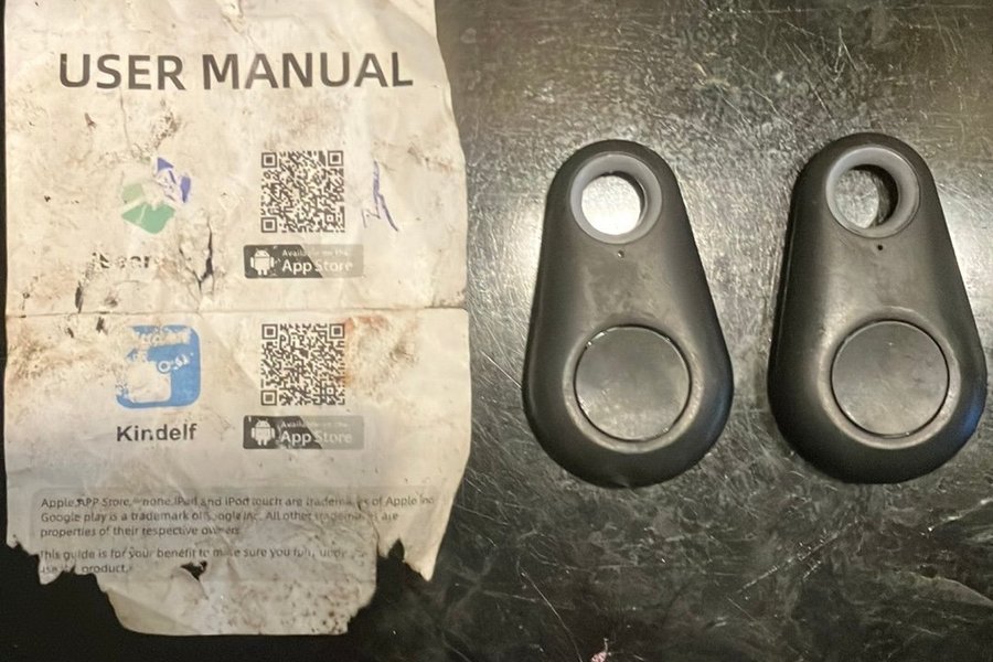 Två Kindelf Itsear Trackers med användarmanual. Sätt dom på ditt husdjur eller tex dina nycklar.