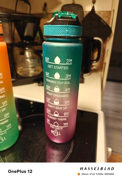 Med vattenflaskan får du en fulländad kombination av stil, funktion och säkerhet. Denna high-end flaska rymmer en liter vätska och har en smart markör vilket gör det enkelt att hålla koll på ditt dagliga vätskeintag.