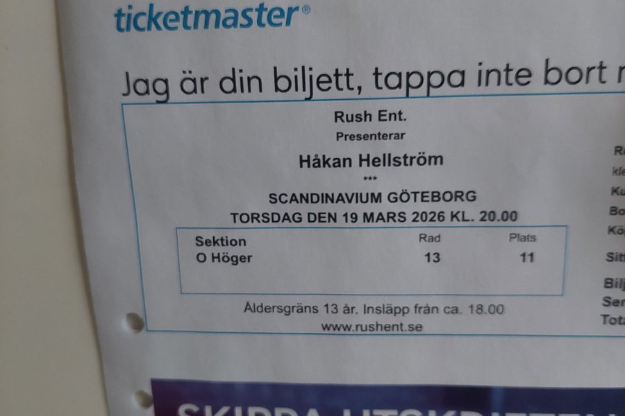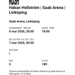 Säljer 2st. Biljetter till Håkan Hellström på Scandinavium den 19 Mars. Bra sittplatser.