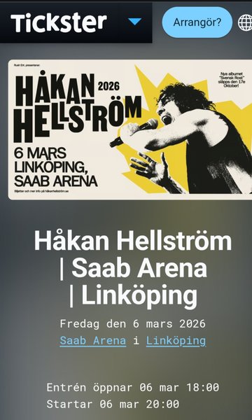 Håkan Hellström Linköping 6 mars. Två ståplatser