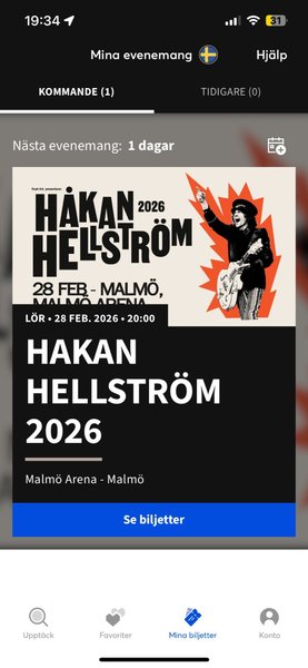 Säljer två sittplatser till Håkan Hellströms konsert i Malmö imorgon 28/2 på Malmö arena.