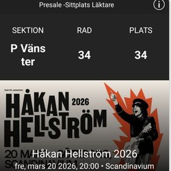 Säljer 2 biljetter till Håkan Hellström i Sundsvall pga sjukdom